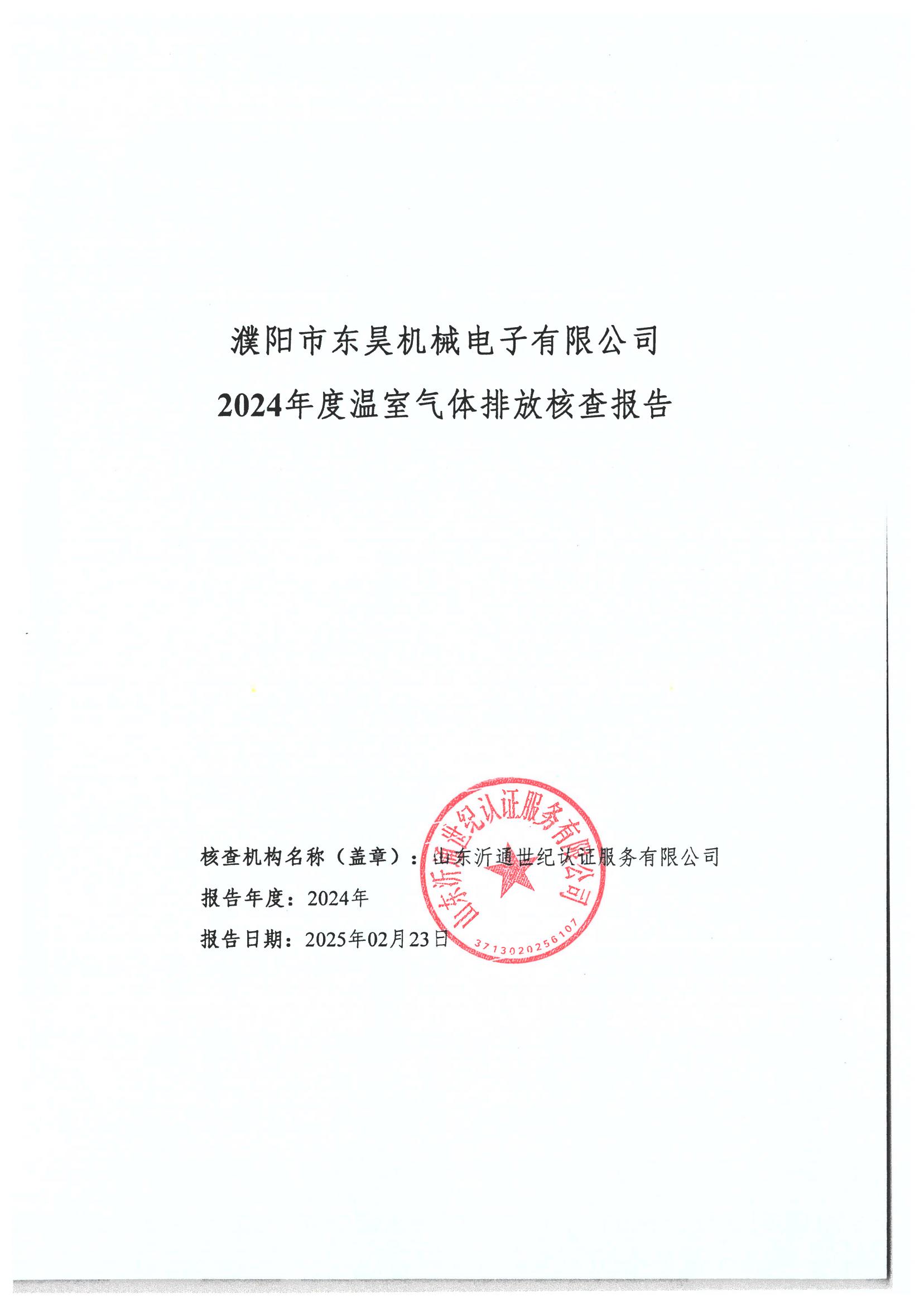 濮陽市東昊機械電子有限公司封隔器產(chǎn)品已通過第三方溫室氣體排放核查。